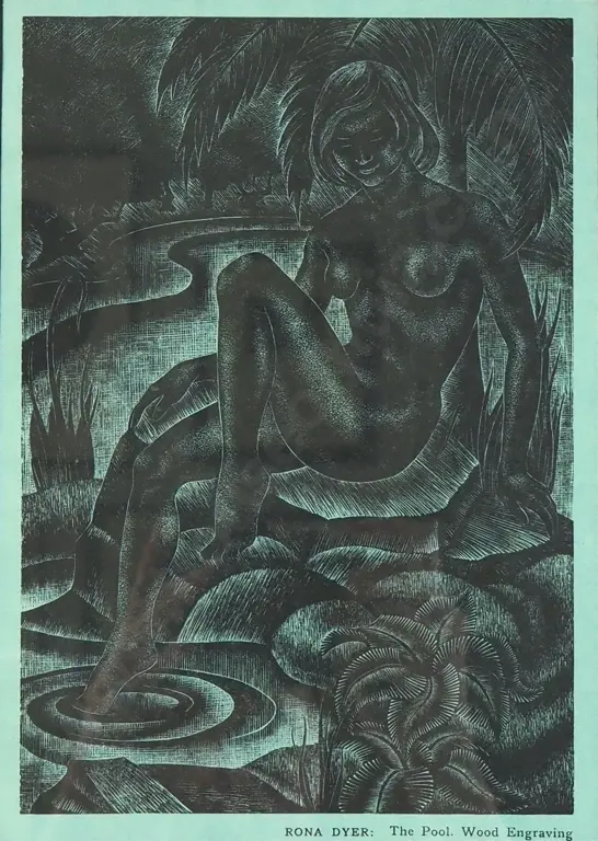 Rona Dyer - The Pool, Linocut on Coloured Paper.