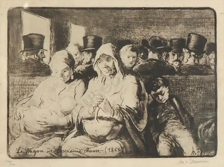 Honore' Daumier - The Third Class Carriage, Lithograph