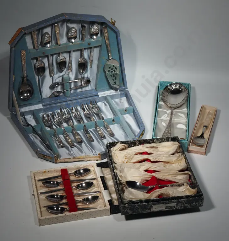 WoodenBox Containing A Collection Of Souvenir Spoons, Tea Caddy Spoon, Butter Knife, Fork