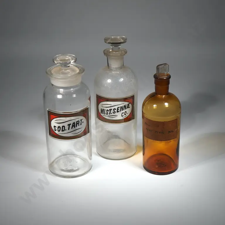 Two Large Antique Chemist Jars, an Antique Conical Measuring Glass Beaker, A Mortar & Pestle