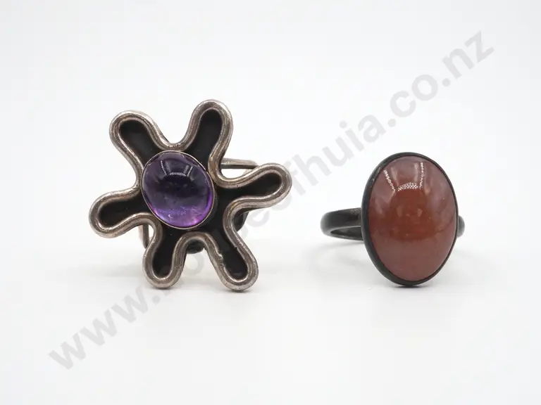Two Sterling Silver Pink Stone Rings