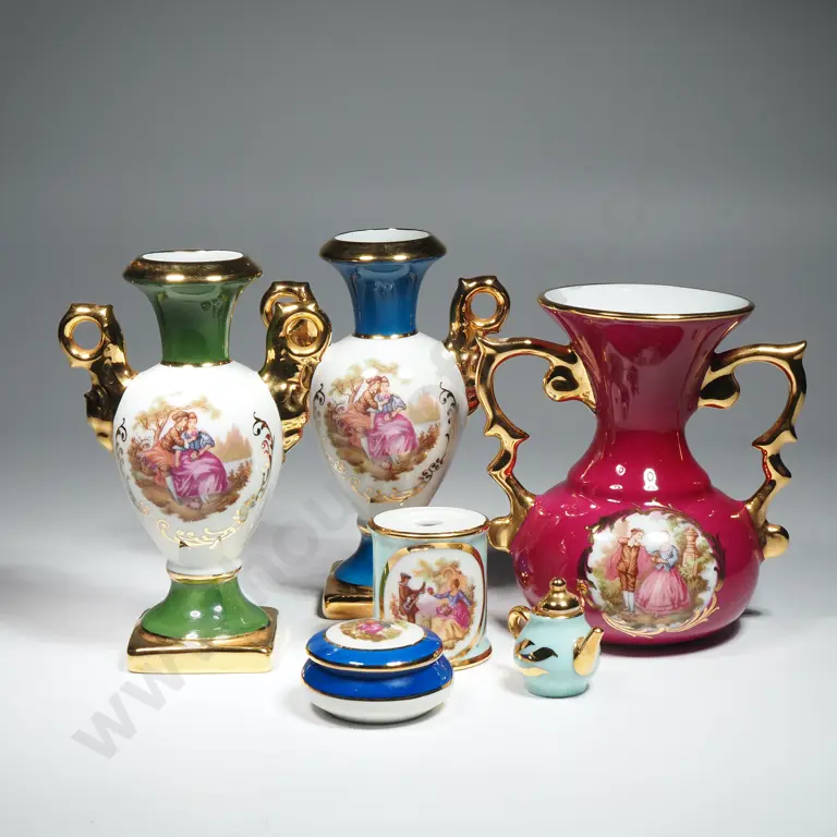 Boxed Art Deco Style Vase w Stylized Naked Female Figure in Gilt &Two Art Deco Royal Albert 'Inspiration' Trios