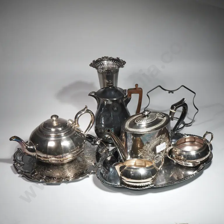 Quantity Of Silver Plate including A Three Piece Teaset & Trays