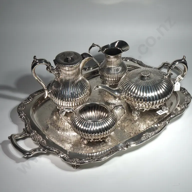 Quality Vintage EPBM Silver Plated Four Piece Tea Set w Fluted Decoration