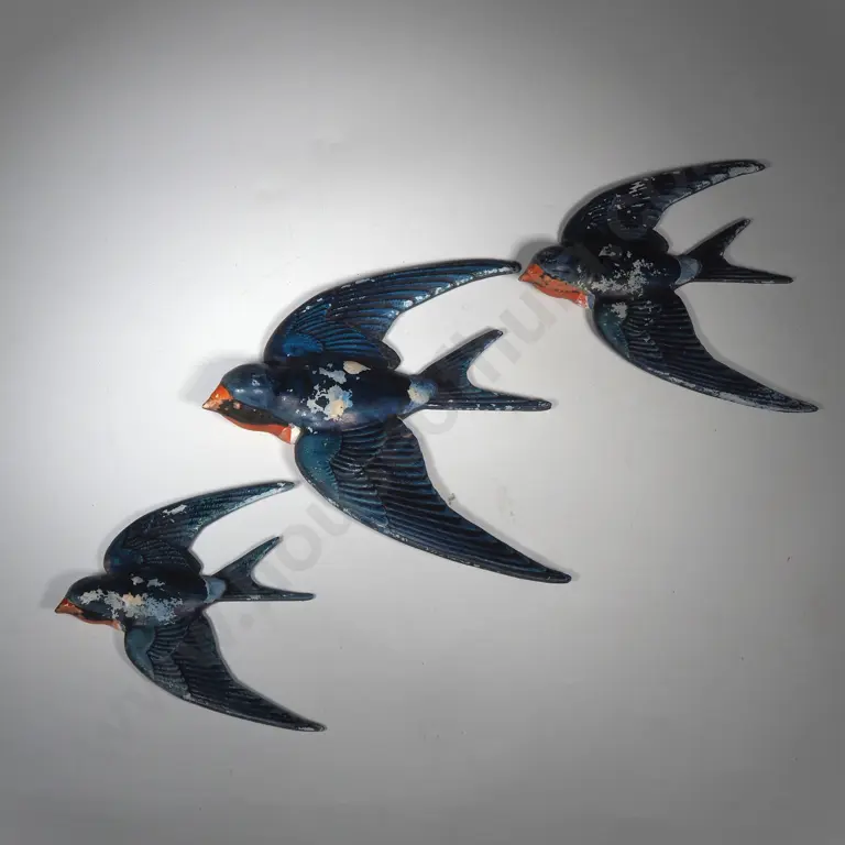 Three Graduated Ceramic Wall Swallows - Made in England - Paint-work A/F