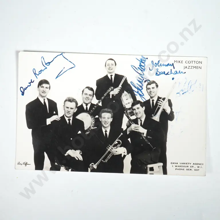 Signed Postcard Mike Cotton Jazzmen Band -Johnny Beecham, Jim Garforth, Dave Rowberry & Derek Tearle