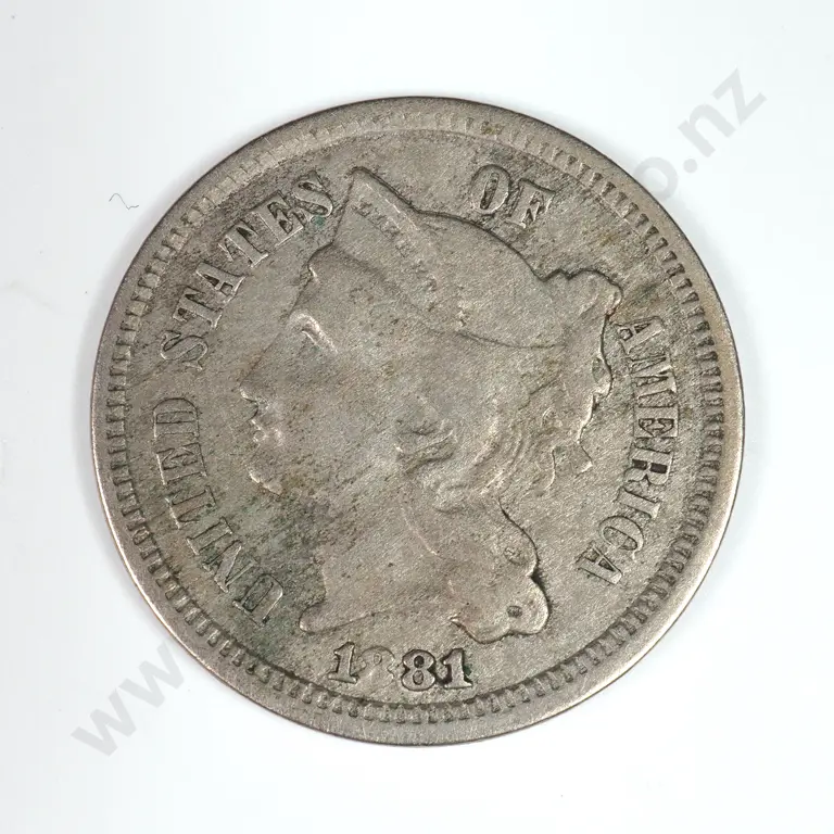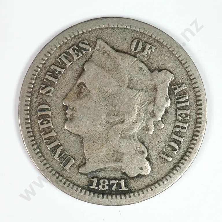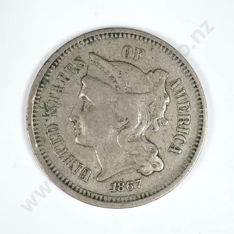 Nickel Three Cent: 1866 - Very Fine. C.V USD $43 ( NZD $75 )