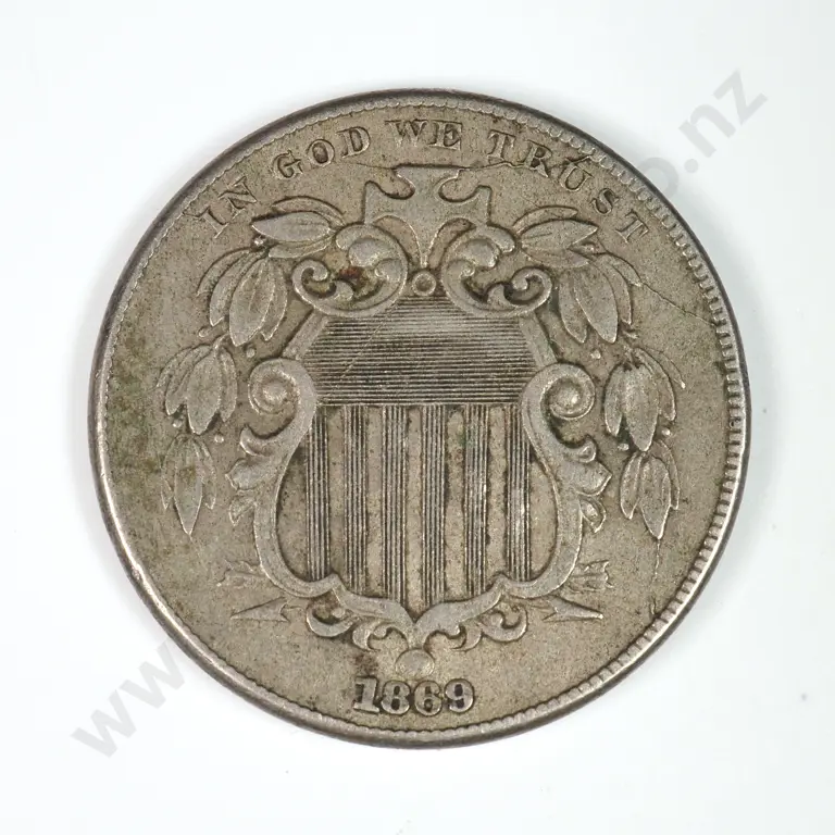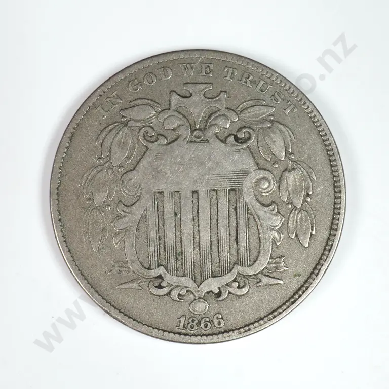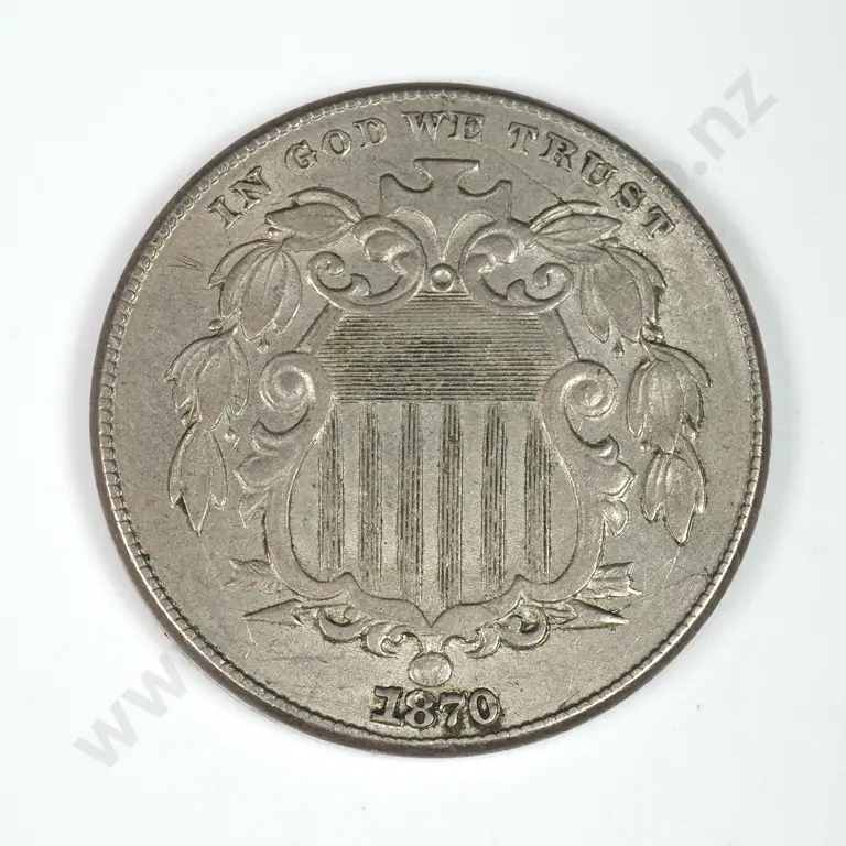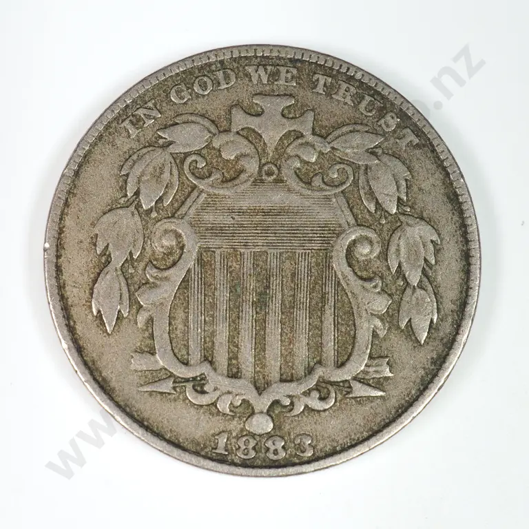 Shield Nickel: 1873 Open 3 - Very Fine. C.V USD $100 ( NZD 175 )