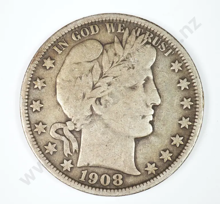 Barber Quarter Dollar: 1908 O - Fine. C.V USD $44 ( NZD $75 )