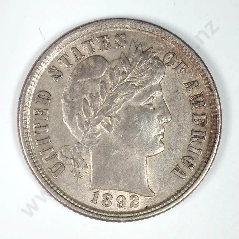 Barber Dime: 1892 - Almost Uncirculated. C.V USD $96 ( NZD $165 )