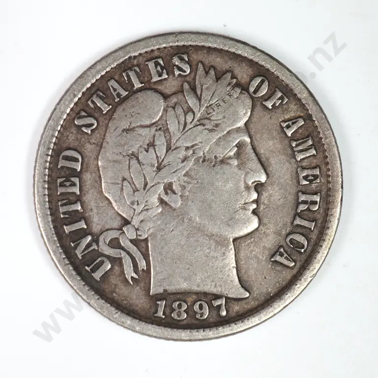Barber Dime: 1897 - Very Fine. C.V USD $23 ( NZD $40 )