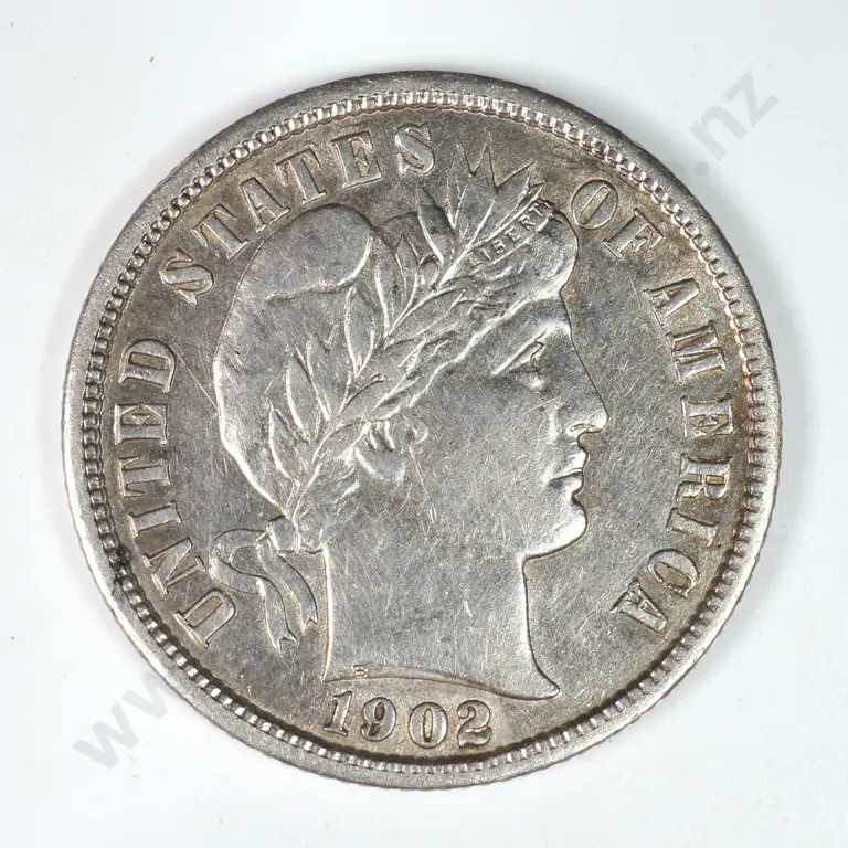 Barber Dime: 1902 - Extremely Fine. C.V USD $42 ( NZD $70 )
