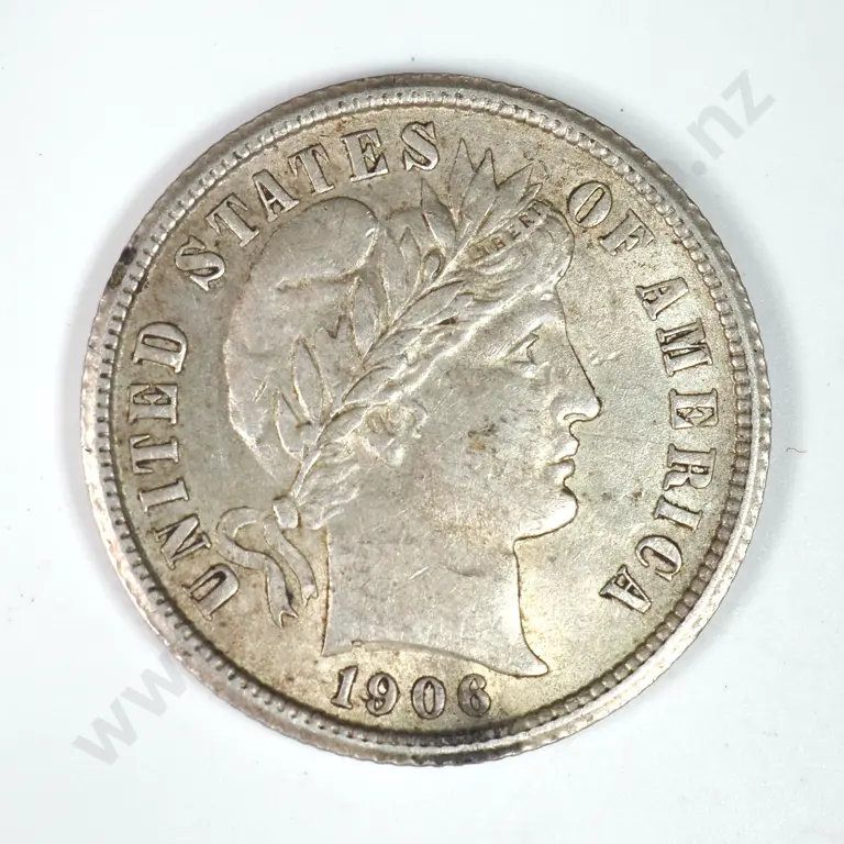 Barber Dime: 1906 - Extremely Fine. C.V USD $42 ( NZD $70 )