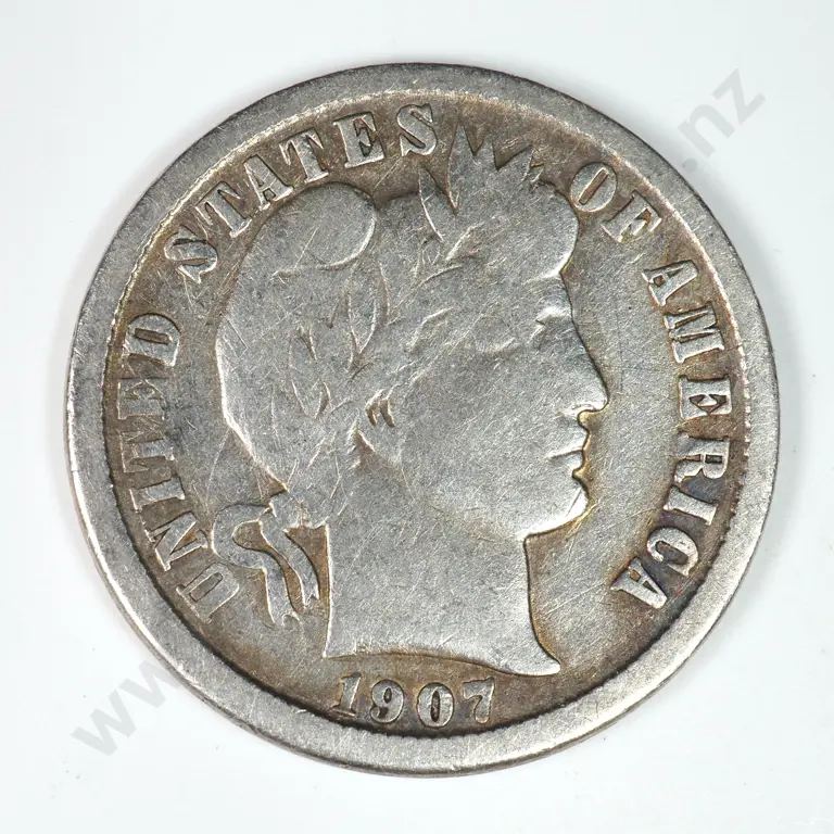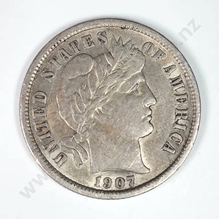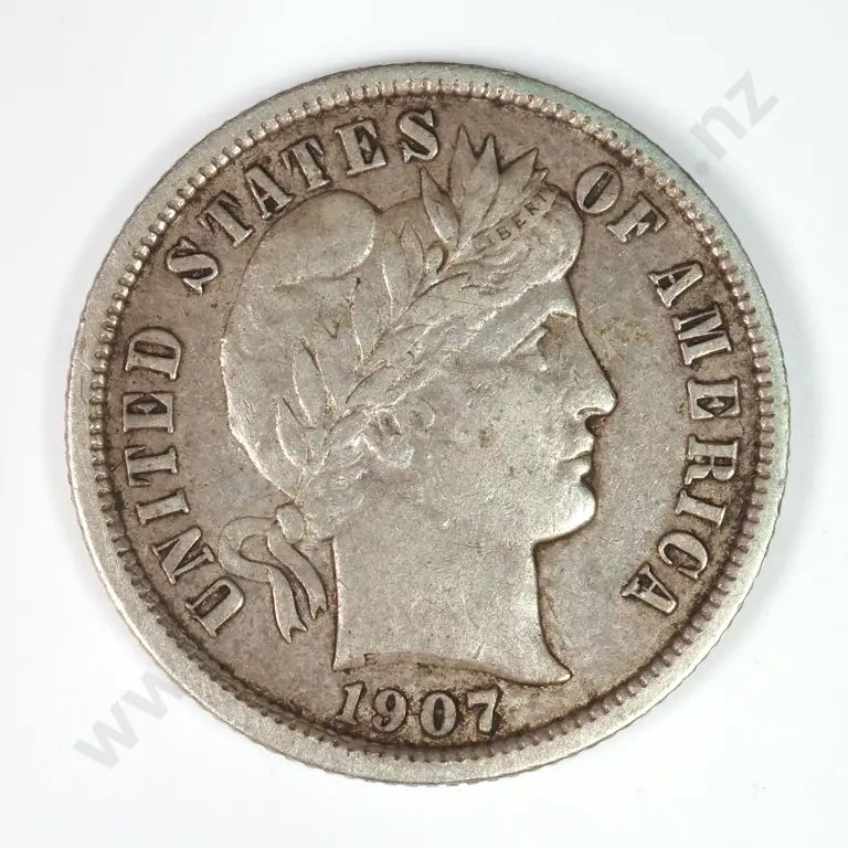 Barber Dime: 1907 - Extremely Fine. C.V USD $42 ( NZD $70 )