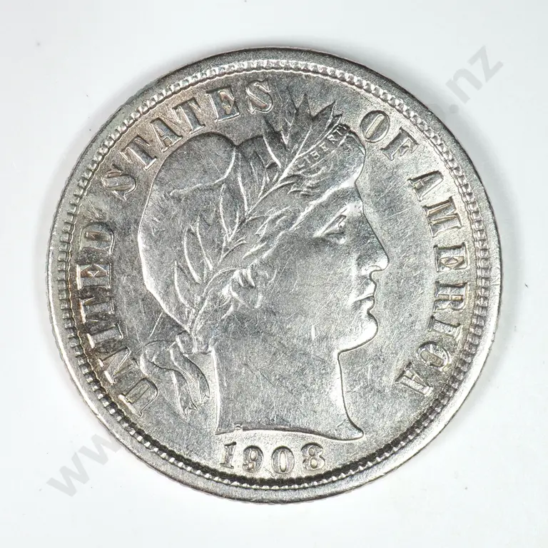 Barber Dime: 1908 - Almost Uncirculated. C.V USD $96 ( NZD $165 )