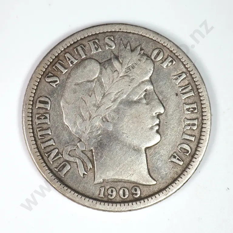 Barber Dime: 1909 - Very Fine. C.V USD $23 ( NZD $40 )