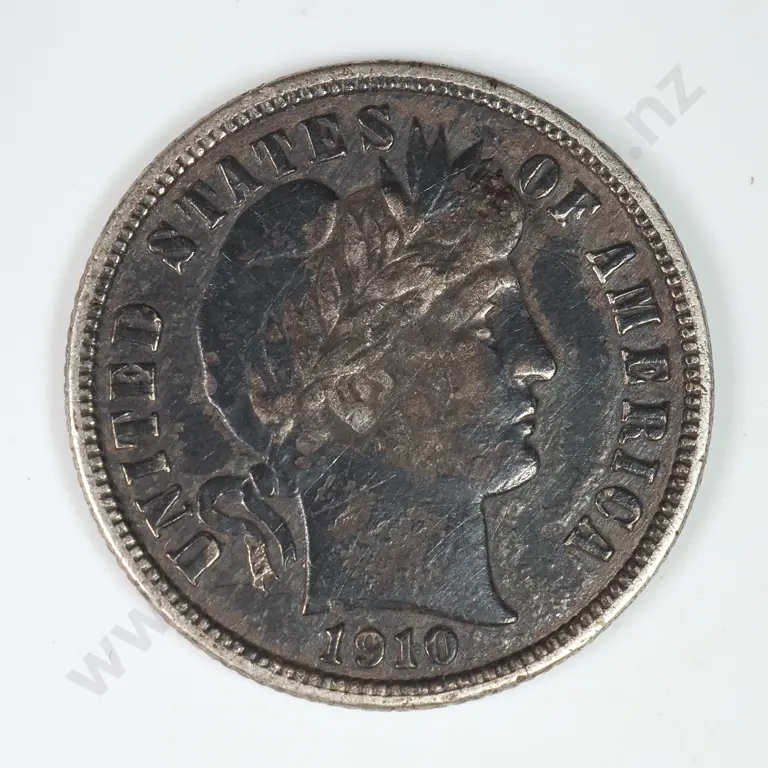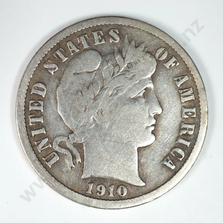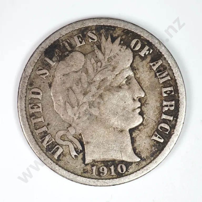 Barber Dime: 1910 - Very Fine. C.V USD $23 ( NZD $40 )
