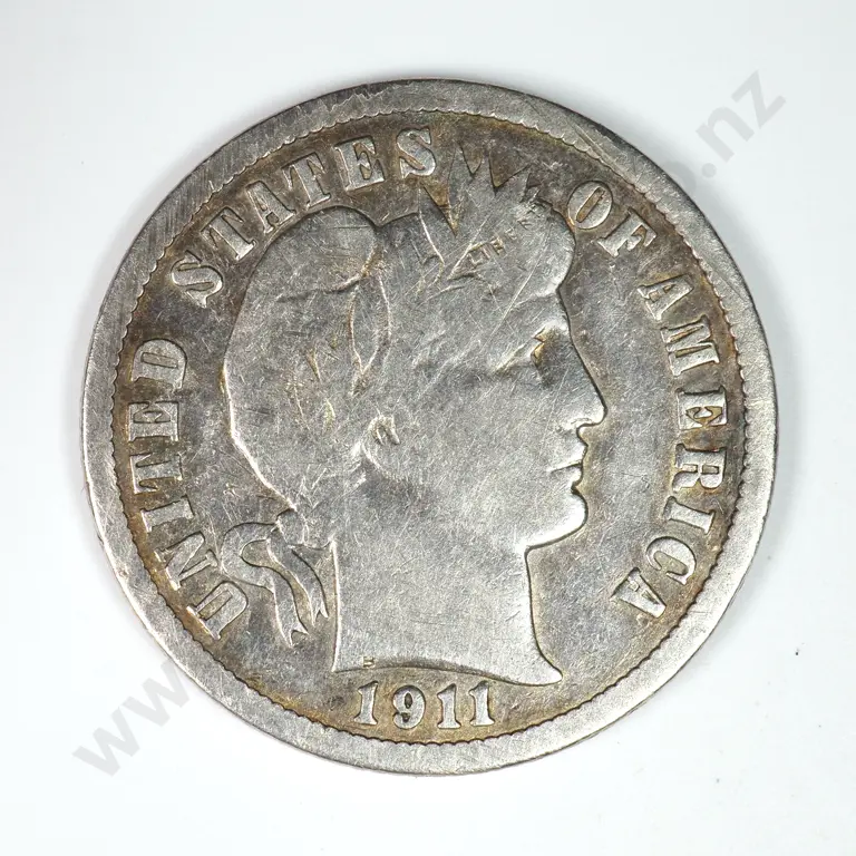 Barber Dime: 1911 - Very Fine. C.V USD $23 ( NZD $40 )