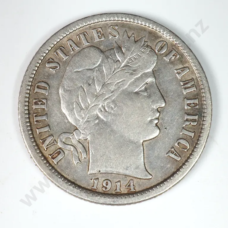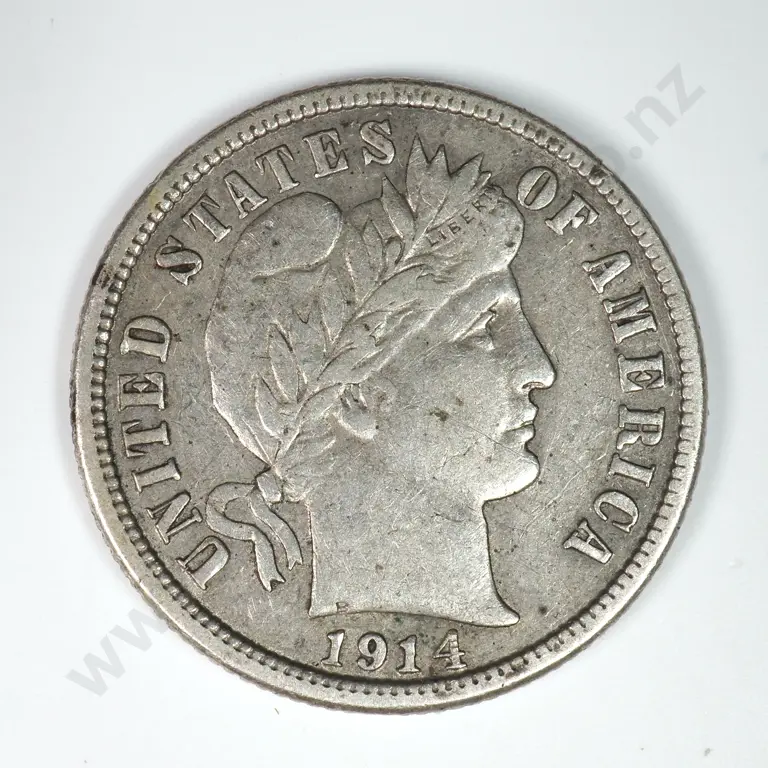 Barber Dime: 1914 - Very Fine. C.V USD $23 ( NZD $40 )
