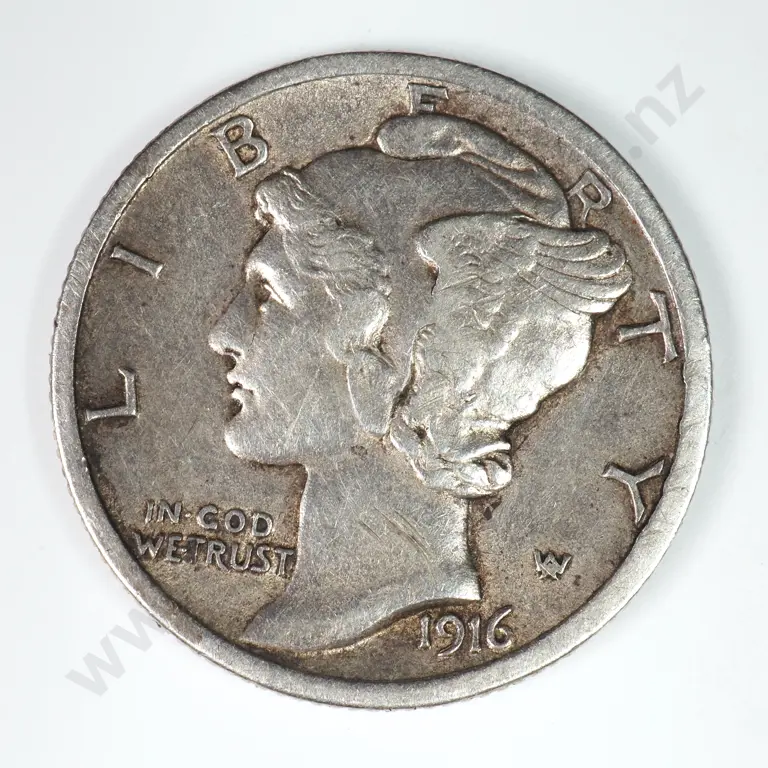 Mercury Dime: 1916 S - Extremely Fine. C.V USD $29 ( NZD $50 )