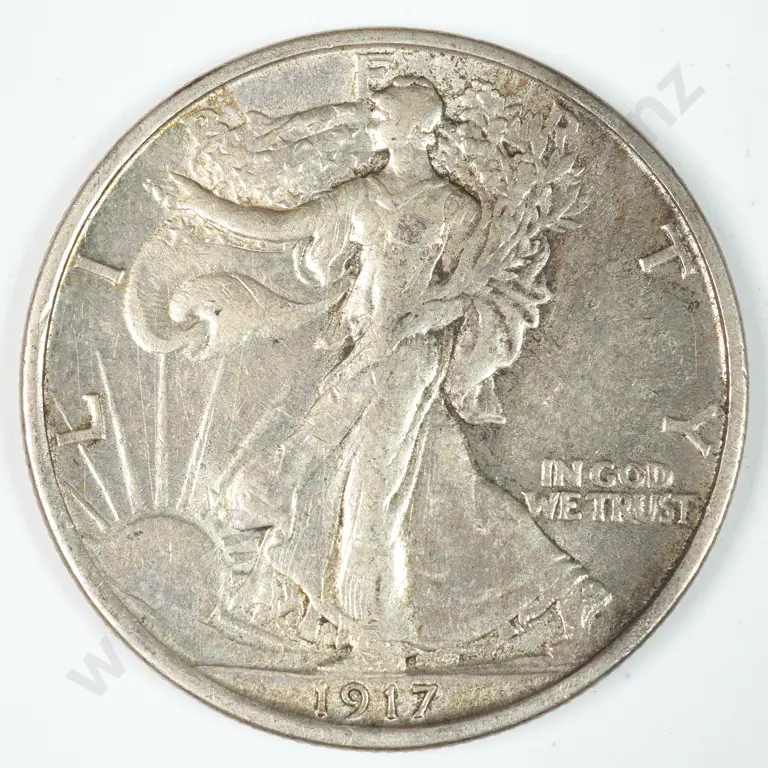 Walking Liberty Half Dollar: 1917- Extremely Fine. C.V USD $70 ( NZD $120 )