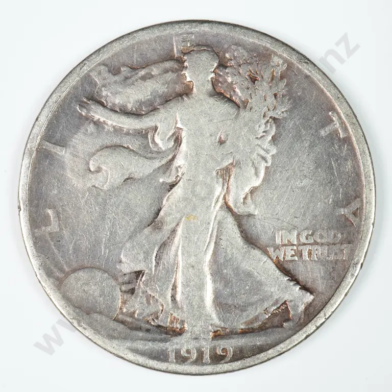 Walking Liberty Half Dollar: 1919 - Very Good. C.V USD $70 ( NZD $120 )