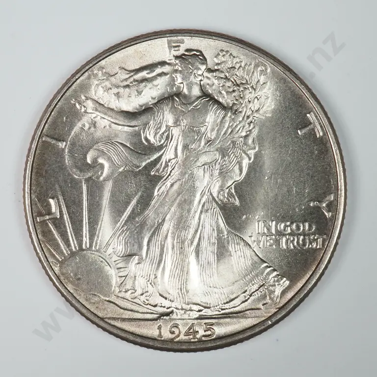 Walking Liberty Half Dollar: 1945 - Uncirculated. C.V USD $63 ( NZD $110 )