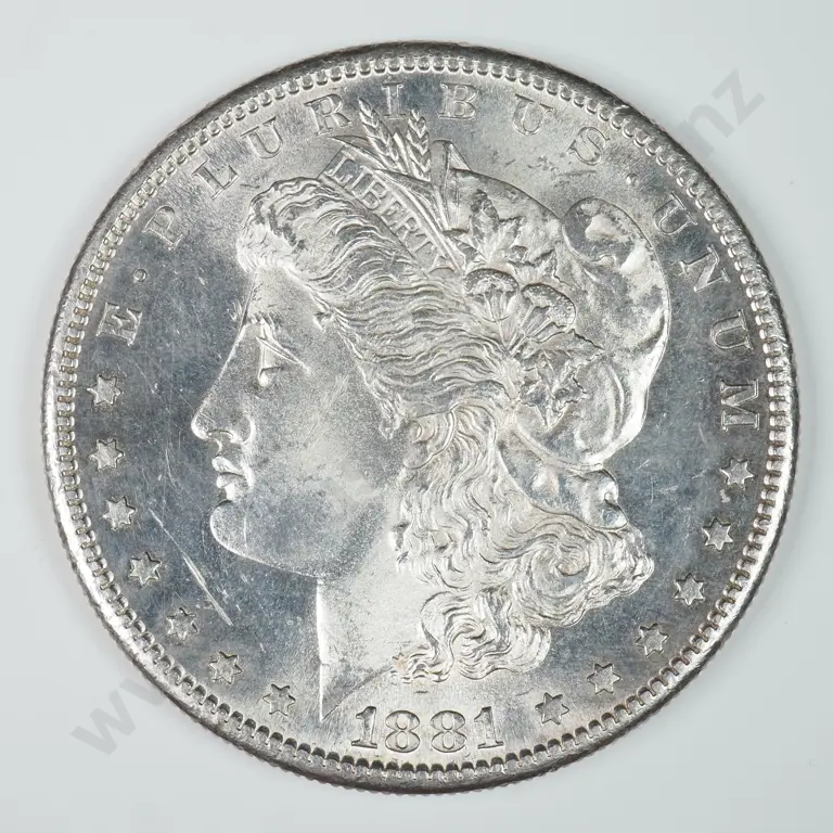 Morgan Dollar: 1881 - MS60 C.V USD $116 ( NZD $200 ) MS65 C.V USD $655 ( NZD $1140 )