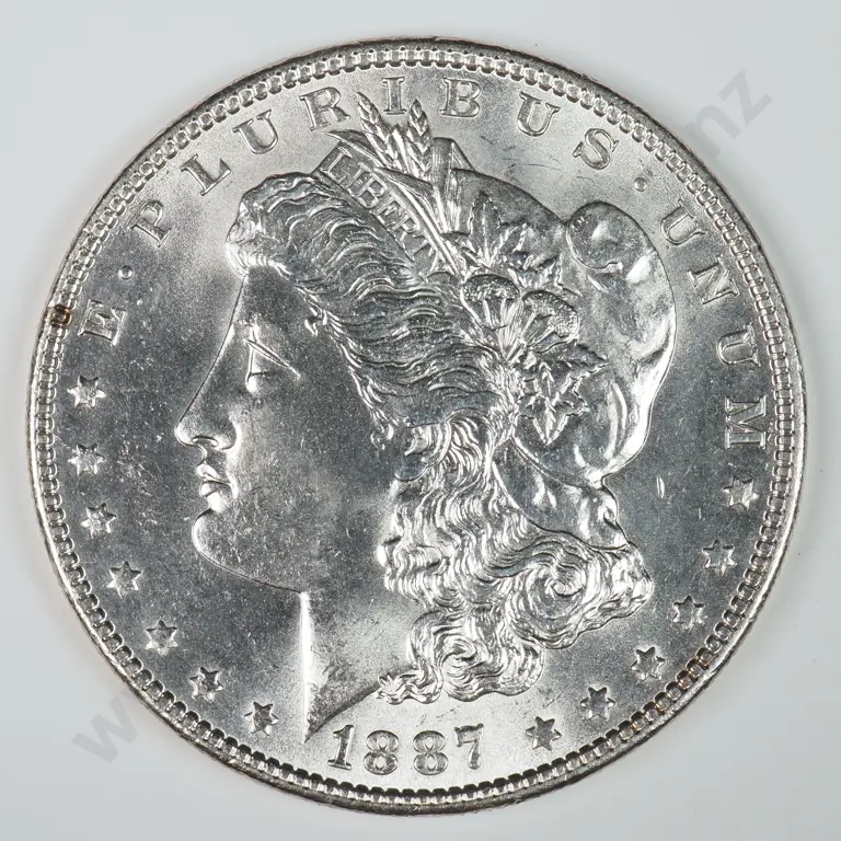 Morgan Dollar: 1887 S - MS60 C.V USD $268 ( NZD $465 ) MS65 C.V USD $1921 ( NZD $3340 )