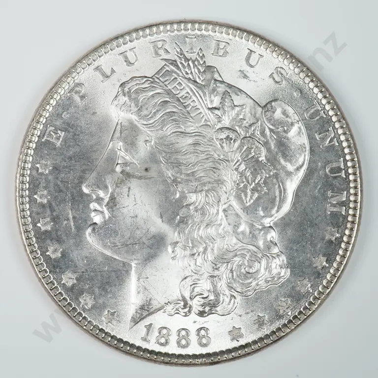 Morgan Dollar: 1888 - MS60 C.V USD $124 ( NZD $215 ) MS65 C.V USD $332 ( NZD $575 )