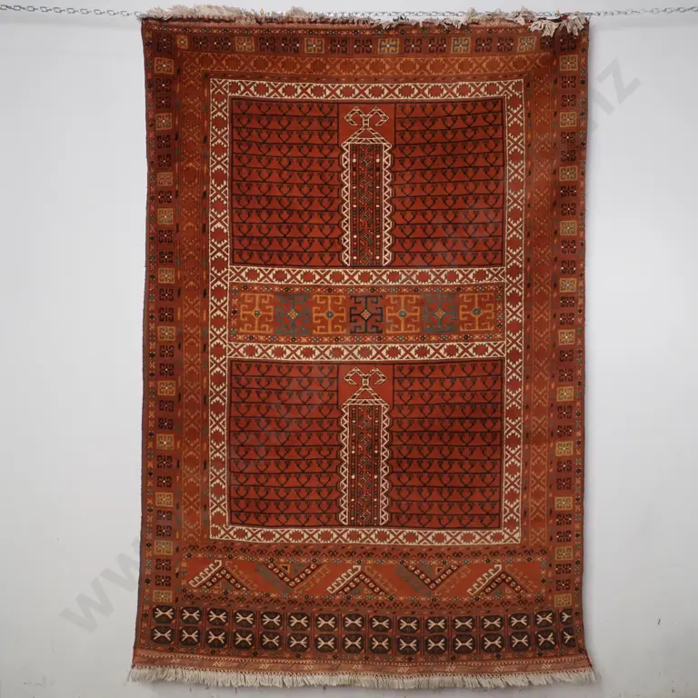 Very Large Hand Knotted Persian Rug w Blue & Autumn Tones L5.1 x W1.9m