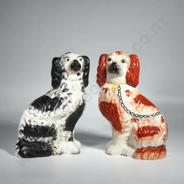 Two Unique Handmade Ceramic Speakers - Red & Black on Cream Ground.
