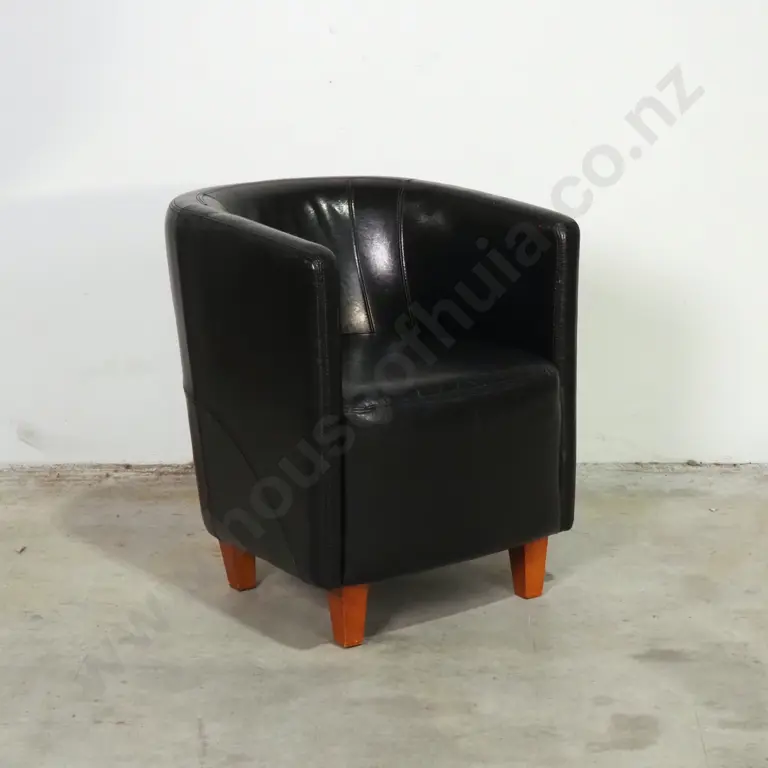 Dark Brown Leather Tub Chair on Square Tapered Wooden Legs