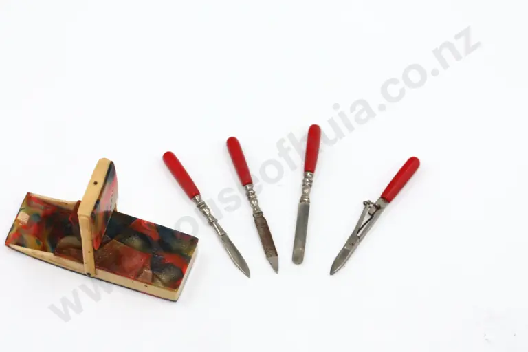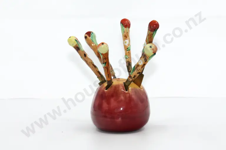 Majolica Peach with Six Fruit Knives Estimate: $10 - $20