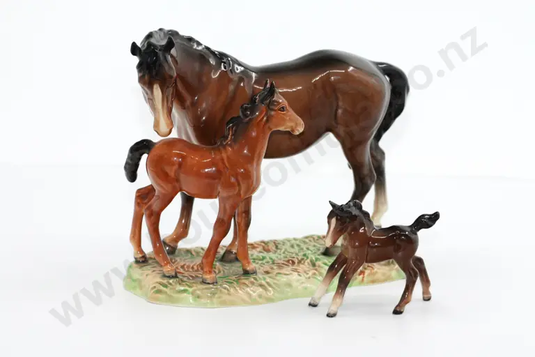 Large Beswick Chestnut Mare with Foal + Single Foal