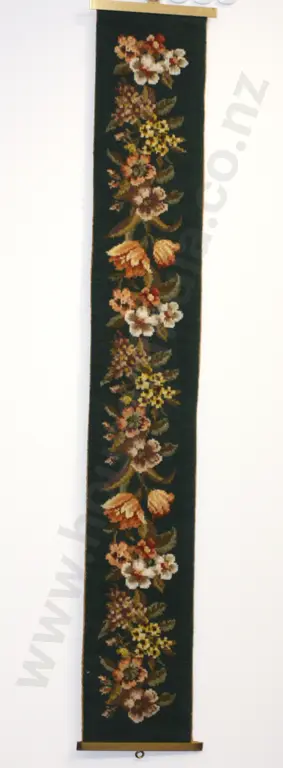 Hanging Tapestry in Green Yellows & Whites with Brass Fixtures