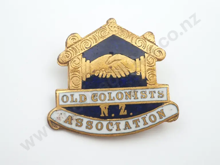 Vintage gilt metal and enamel Old Colonists N.Z. Association badge