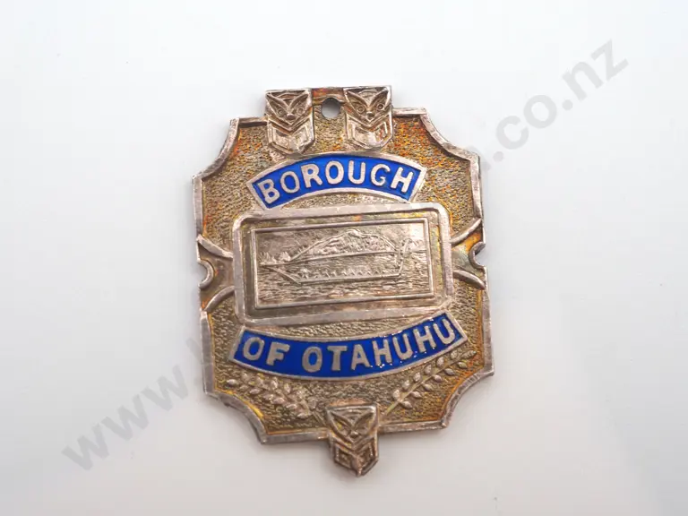 Vintage sterling silver and enamel Borough of Otahuhu engraved on the back “N. F. BURGESS / COUNCILLOR