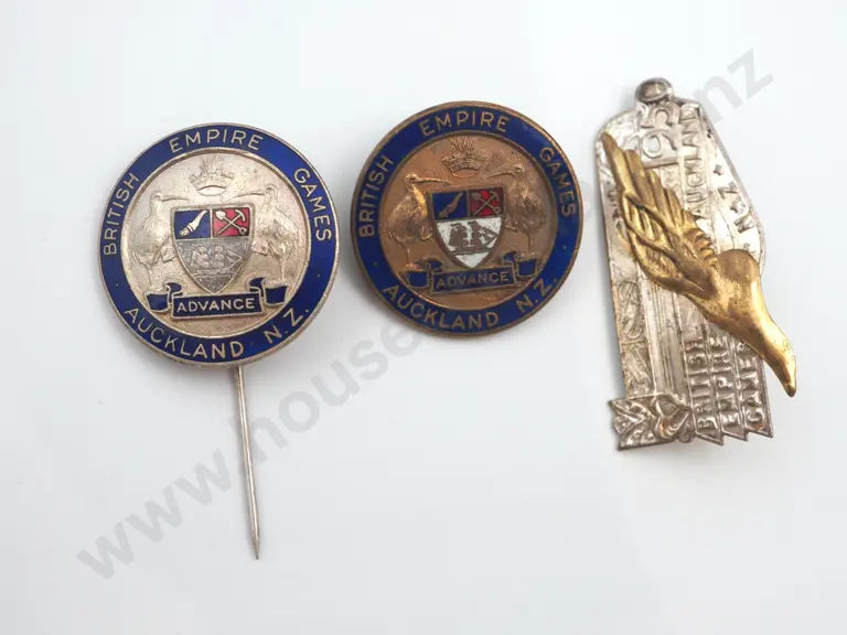 3 x different vintage New Zealand metal pins and badges issued to commemorate the British Empire Games