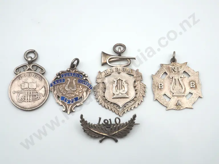 5 x sterling silver Brass Band medals awarded to “TROWNSON”, 1909 to 1920