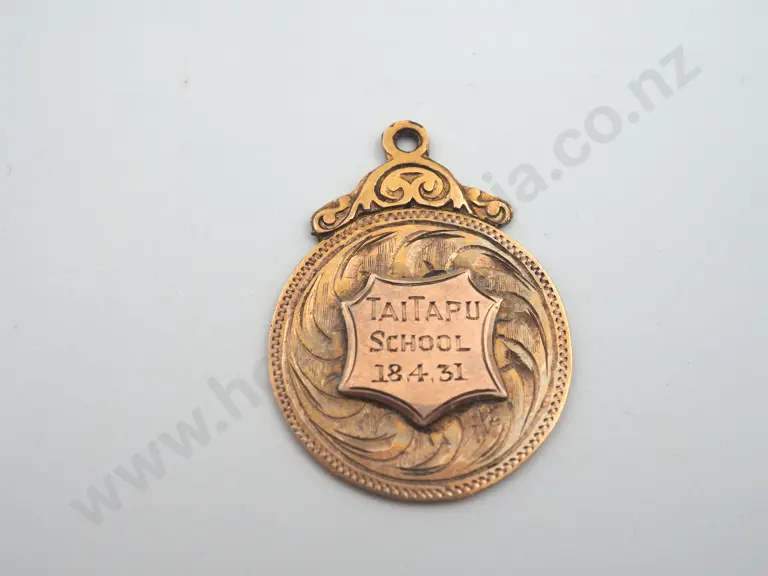 Vintage 9ct 4.6 grams gold medal engraved on the front “TAITAPU / SCHOOL / 18.4.31”