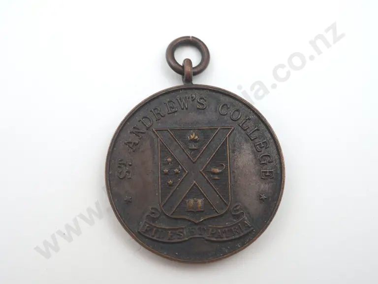 Vintage copper medal St Andrews College ( Christchurch ) engraved on the back “W.D.F. / 1947