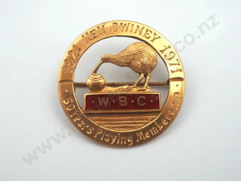 Vintage 9ct gold 9.21 Grams and enamel Wellington Bowling Club badge