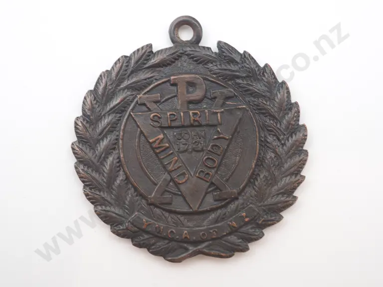 Antique Y.M.C.A. of New Zealand copper medal engraved on the back “TOURNAMENT / AUCKLAND / 1914