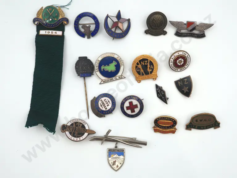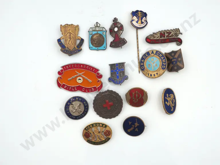 15 x different vintage metal and enamel pins and badges, all by New Zealand makers.