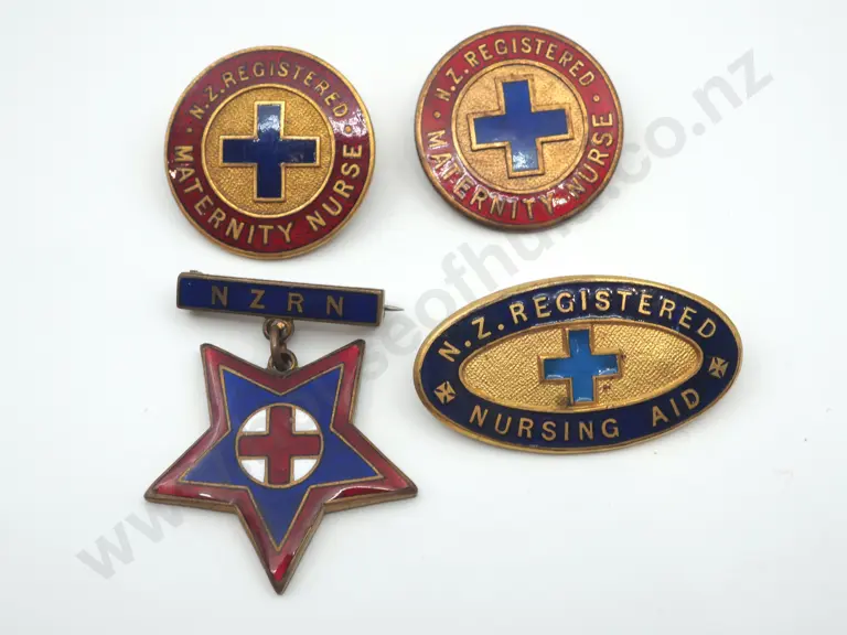 4 x vintage New Zealand Nursing badges. 1925 to 1952