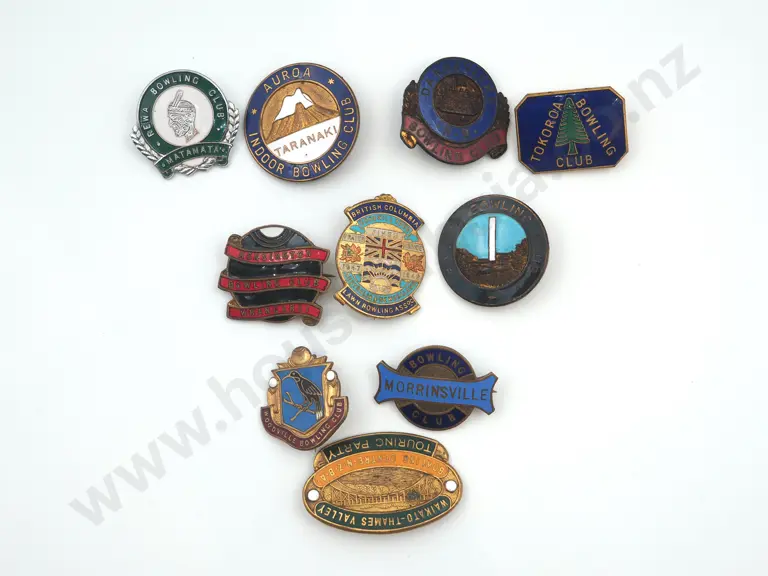 10 x different vintage enamelled New Zealand bowling club badges.