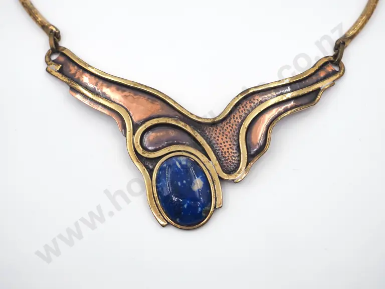 Costume Lapis and Gold Link & Copper Necklace Estimate: $80 - $120