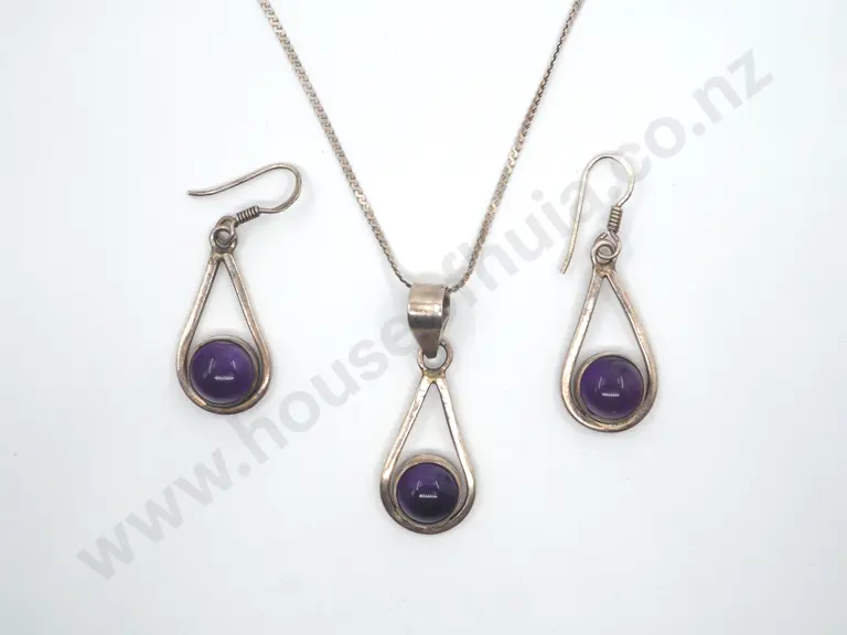 Michael Hill Sterling Silver Earring and Amethyst Necklace Set in Original Box Estimate: $40 - $60