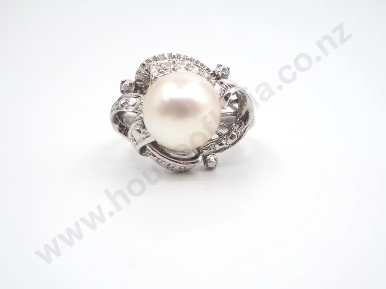 Pearl & Diamond Ring in 18ct White Gold Estimate: $600 - $800